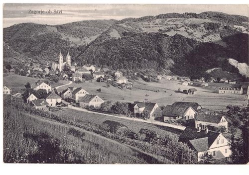 Na razglednici je cerkev sv Petra in Pavla z okolico, zgoraj levo je napis Zagorje ob Savi
