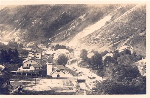 Črnobela razglednica Trbovelj, dimenzije 9 x 13,8 cm.