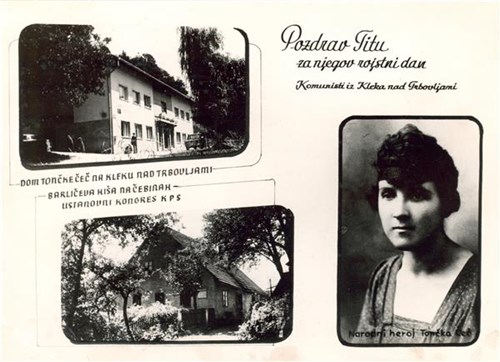 Črnobela razglednica Trbovelj, dimenzije 8,8 x 18 cm.