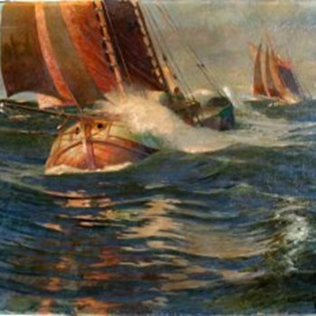 Frachtensegler (Tjalk) in stürmischer See