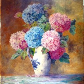 Hortensien in weißem Henkelkrug