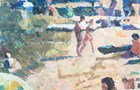 In the late 20th century, painter and illustrator Janez Vidic decorated many Maribor buildings with wall paintings fashioned in a variety of techniques. Many facilities were schools, for which he also adapted the motifs. His 1962 Youth composition is located in the staff room of the Franc Rozman Stane Elementary School. Vidic set in the foreground the figures of two schoolboys and a muscular horse, which may be interpreted as a symbol of youth and strength. The composition expresses playfulness and a fairy tale–like quality, a fantasy world which the artist conveyed so well through numerous illustrations of stories for children and young people. The deep dark background contrasts with light golden accents and the thin lines of the filigreed drawing give the piece a magical appearance. It is an image of an intact, innocent world as seen by children, who are depicted in harmony with flora and fauna. A boy and a girl are running while playing, as a horse and birds observe the event. The motif of children playing was also repeated by Vidic when creating the painting on the wall of another Maribor school, the Angel Besednjak Elementary School. (Nike Duh, in the framework of the Creative Path to Knowledge project, Virtual guide; The investment is co–financed by the Republic of Slovenia and the European Union from the European Social Fund)