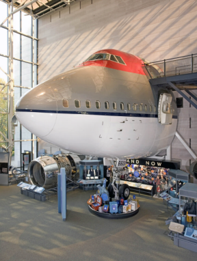 America by Air explores the history of air transportation in the United States and shows how the federal government has shaped the airline industry, how improvements in technology have revolutionized air travel, and how the flying experience has changed. Highlights include a Ford 5-AT Tri-Motor, Boeing 247 and DC-3 airliners; a cockpit simulation of an Airbus A320; and a nose from a Boeing 747 jumbo jet that you can enter.