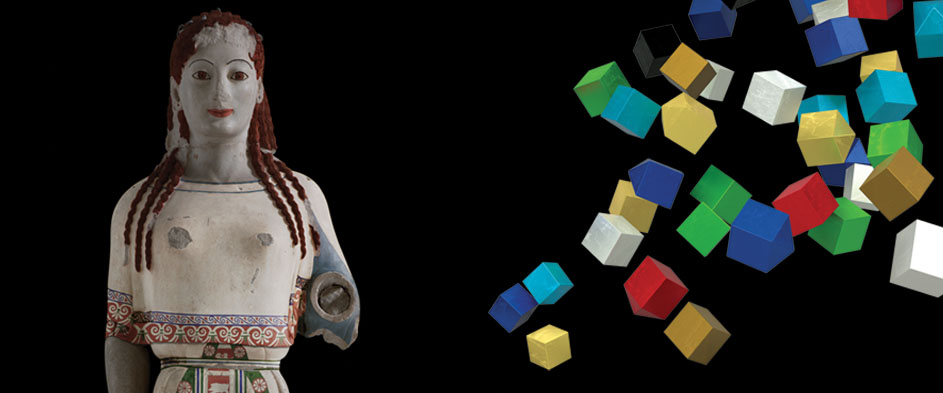 The Acropolis Museum is conducting research on its unique collection of archaic statues, which retain their colors to a small or large degree, and to open a very extensive discussion with the public and various experts on color, its technical issues, its detection using new technologies, its experimental use on marble surfaces, its digital reconstruction, its meaning, as well as the archaic period’s aesthetic perception of color. So far, scientific research into the color found on ancient sculpture has made great progress and reached surprising conclusions that to a large degree refute the stereotypical assumptions regarding ancient sculpture. It turns out that color, far from being just a simple decorative element, added to the sculpture’s aesthetic quality.