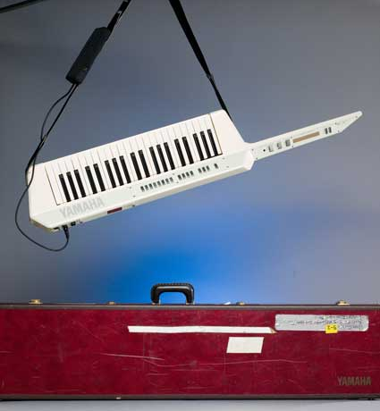 This special display case in showcases jazz treasures, including Dizzy Gillespie’s trumpet, Herbie Hancock's synthesizer keyboard, Mongo Santamaría's conga drum, and Tony Bennett’s oil painting of Ella Fitzgerald.