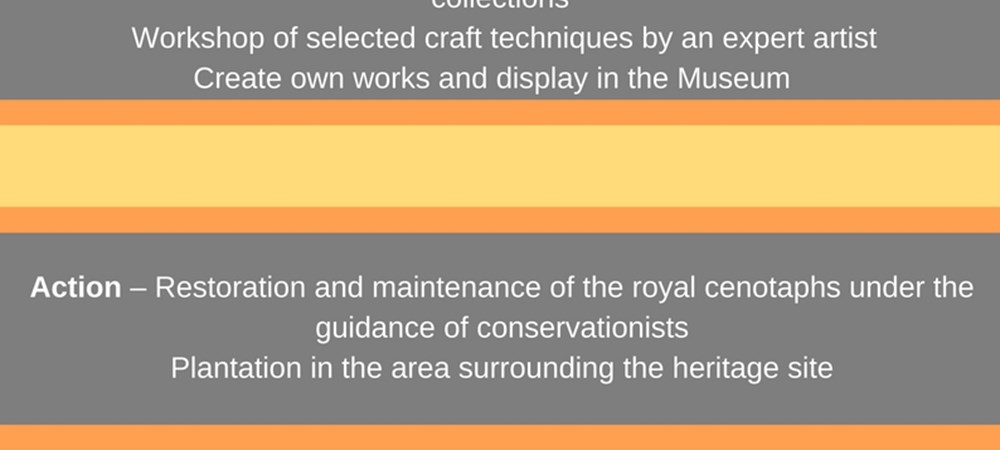 The royal cenotaphs, a part of the Jaipur royal heritage are available as a site for studets to learn about certain conservation principles while restoring/ maintaining heritage sites by working on site under the guidance of Museum professionals.