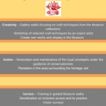 Student volunteers will be trained by Museum professionals to conduct specialised guided tours and engage with a range of visitors including school groups, family groups, adults and differently abled persons. They will undertake visitor surveys to understand the demographics of the visitors and betterment of the museum experience. The Museum is committed to inclusive access and will sensitise students on the principles and practice of inclusiveness.