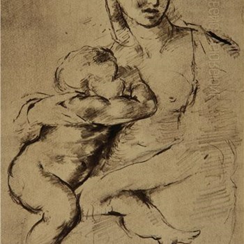 LAJČI PANDUR: MATI Z OTROKOM (Skica po...
