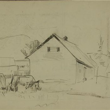 JANEZ ŠIBILA: HIŠA S KRAVAMI PRED HIŠO (recto)...