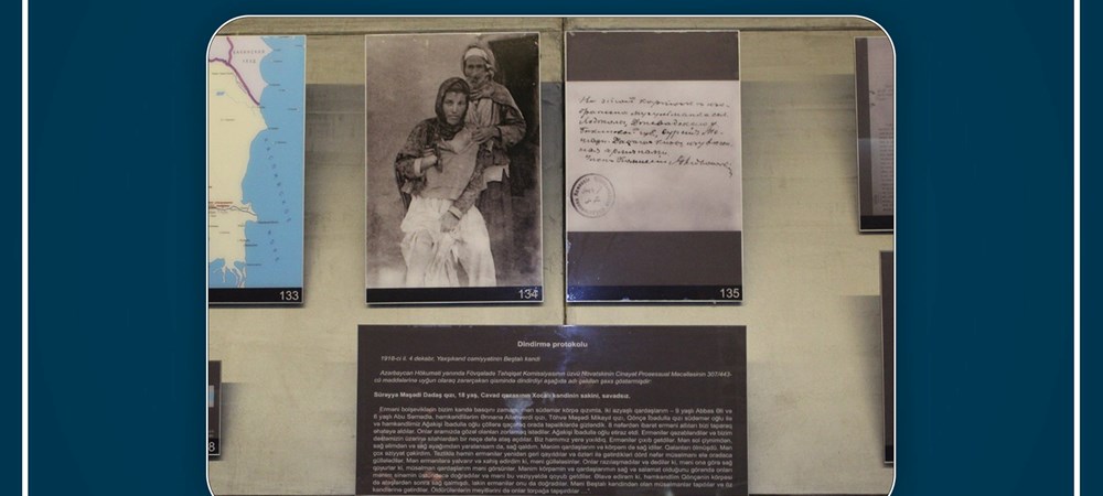 Во время нашествия армянских большевиков на нашу деревню я бежала в сторону холмов чтобы укрыться там вместе со своей младшей дочерью, двумя малолетними братьями – 9-летним Аббасали и 6-летним Абу Самедом. Также с нами были односельчане Аннааной Аллахверди гызы, Тохва Мешади Микаил гызы, Гонча Ибадулла гызы с ее грудным малышом и старик Агакиши Ибадулла оглу. Армянские всадники в составе 8 человек нашли и окружили нас. Они намеревались изнасиловать красивых среди нас. Старик Агакиши Ибадулла оглу стал храбро протестовать и возражать этому. Армяне пришли в ярость и открыли огонь по нам. Мы все упали на землю. Армяне ускакали прочь. Я была ранена в левое плечо, правую руку и ногу. Хотя была невыносимая боль я выжила. Мои ребенок, братья и сестры тоже были живы. Грудной ребенок Гончи тоже выжил. Все остальные были мертвы. Я очень страдала от боли. Вскоре эти армяне вернулись и привели с собой 4 мусульман, которых безжалостно казнили на том же месте. В отчаянии и агонии я хотела покончить с собой. Я умоляла армян застрелить меня. Они отказались, заявив, что оставляют меня живой, чтобы мои братья-мусульмане могли видеть мои страдания. А когда они увидели, что мой ребенок и мои братья живы, то они зарезали их прямо на груди и убили. Выжившего малыша односельчанки Гончи армяне тоже безжалостно убили штыками.
