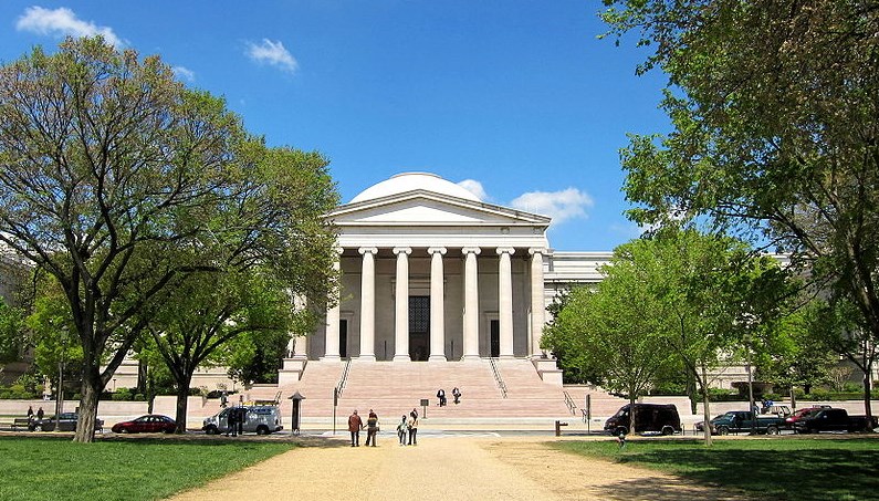 Masterworks by the most renowned European and American artists, including the only painting by Leonardo da Vinci in the Americas and the largest mobile ever created by Alexander Calder, await visitors to the National Gallery of Art, one of the world's preeminent art museums. The Gallery’s collection of paintings, drawings, prints, photographs, sculpture, medals, and decorative arts traces the development of Western art from the Middle Ages to the present. Open to the public free of charge, the Gallery was created for the people of the United States of America by a joint resolution of Congress accepting the gift of Andrew W. Mellon in 1937.