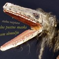 Učenci si pod vodstvom muzejskega pedagoga ogledajo zbirko mask. Med ogledom...