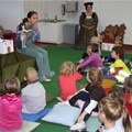 Predšolski otroci prisluhnejo zgodbi o Malem kurentu. Pod vodstvom muzejskega...
