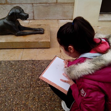 Učenci: si pod vodstvom muzejskega pedagoga ogledajo arheološko razstavo...