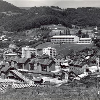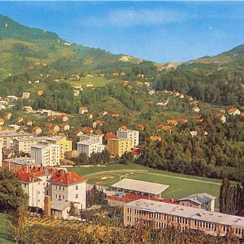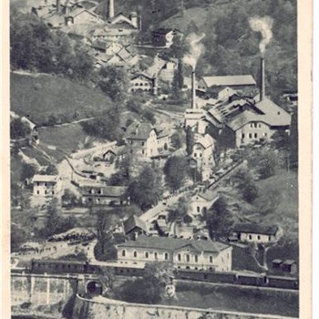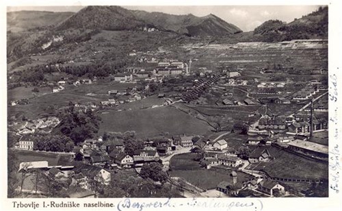 Barva razglednica Trbovelj, dimenzije 8,8 x 13,7 cm.