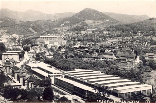 Na razglednici je pogled na Strojno tovarno Trbovlje, Žabjek, ter pogled proti Žrebljevemu hribu. Razglednica je črnobela.