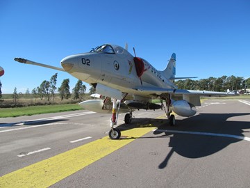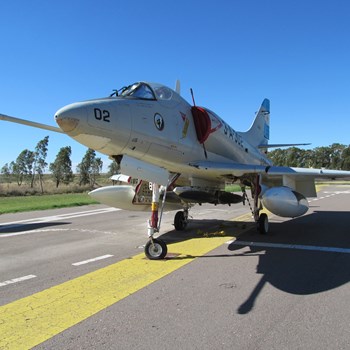 Para que los visitantes puedan apreciar las pequeñas dimensiones desde donde operaban nuestros aviones embarcados se ha simulado en escala 1:1, con 214 metos de eslora y 32 metros de manga.