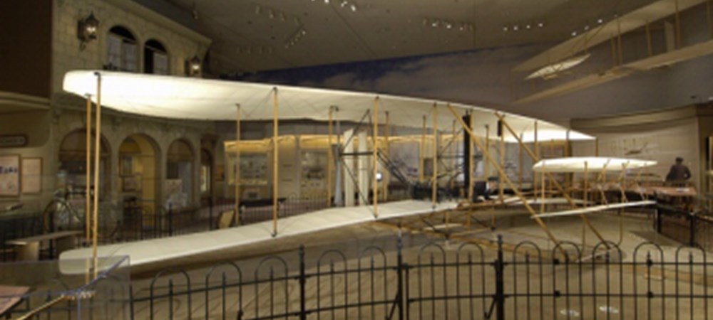 Removed temporarily from its place of honor in Milestones of Flight, the 1903 Wright Flyer, the world's first successful airplane, serves as the centerpiece of this exhibition, which celebrates the centennial of the Wright brothers' historic flights. For the first time, the airplane is being displayed on the floor, so you can get a close-up, eye-level look at the historic craft that ushered in the age of flight.