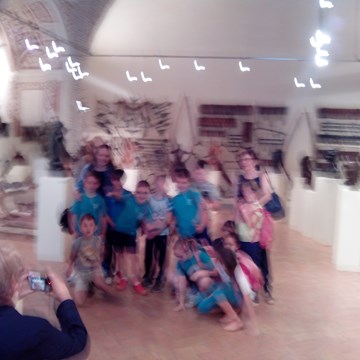 Učenci: si pod vodstvom muzejskega pedagoga ogledajo arheološko razstavo...