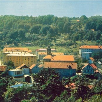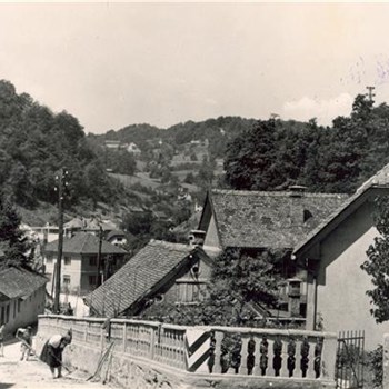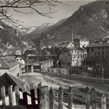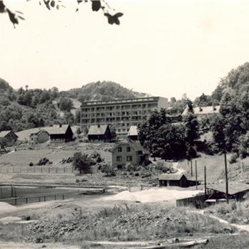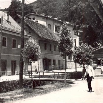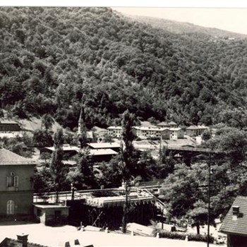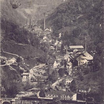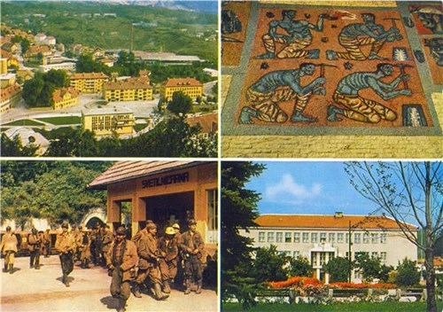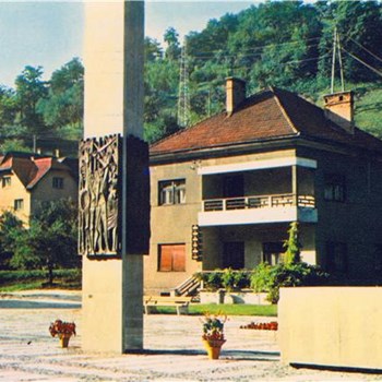 Na razglednici je več motivov: mozaik na Delavskem domu v Trbovljah, občinska stavba, lamparna na rudniku in prostor, kjer je sedaj Spomenik revolucije