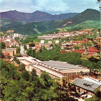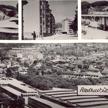 Na razglednici je pogled na Hrastnik, okolica železniške postaje. Spodaj je napis Gruss aus Hrastnik.