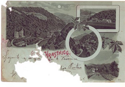 Razglednica je močno poškodovana Na razglednici je več motivov.