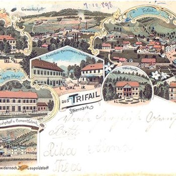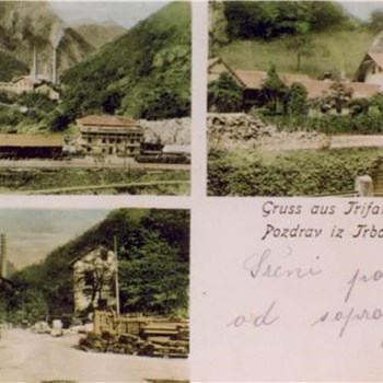 Barvna razglednica Trbovelj, dimenzije 8,8 x 15 cm.