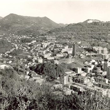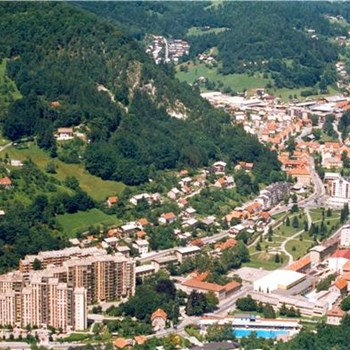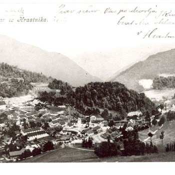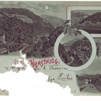 Barva razglednica Trbovelj, dimenzije 8,8 x 13,7 cm.