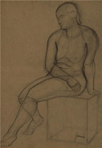 figura obrnjena v l.; se upira na l. roko, študija volumna