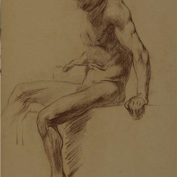 FRANC KOŠAR: ŠTUDIJA AKTA (Sedeča moška figura)